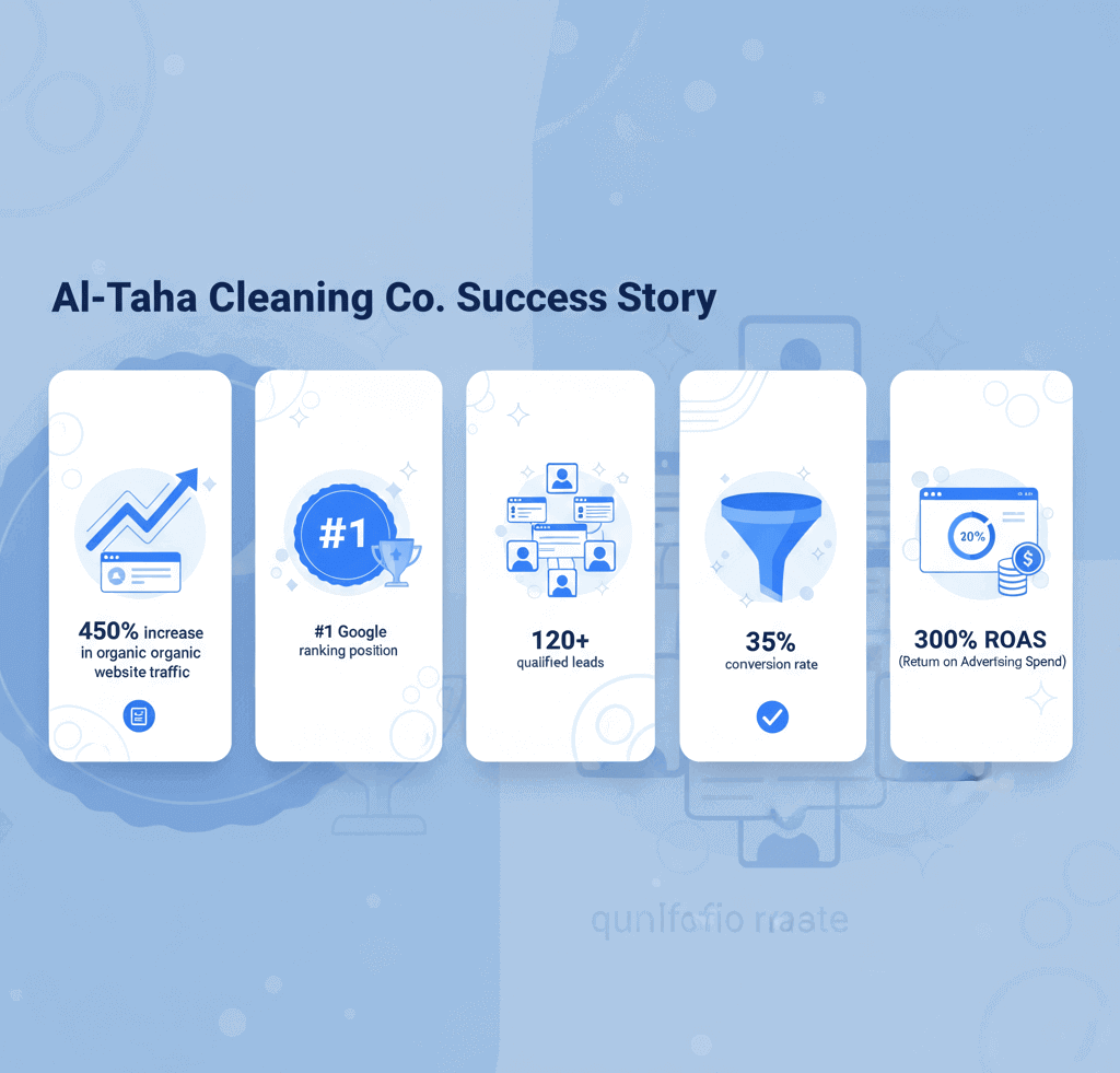 Al-Taha Cleaning Co. is a premium cleaning service provider in Riyadh, offering deep cleaning, post-construction cleanup, and regular maintenance contracts for both villas and commercial spaces. Despite their high-quality services and certified staff, they struggled to stand out in a crowded and competitive local market.